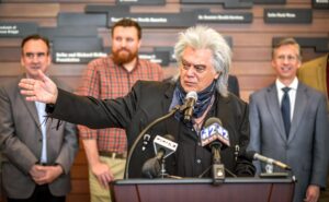 Musician and Neshoba native Marty Stewart, supported by a group of Museum officials, sponsors, and politicians, including former Governor Phil Bryant, announced The World of Marty Stewart exhibit at the Two Mississippi Museums during a press conference at the museums Monday in Jackson.