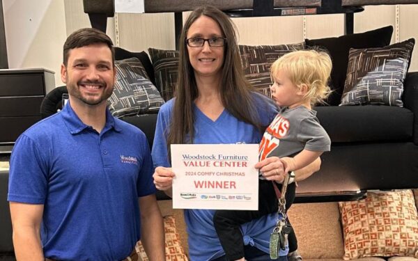 Over 400 people from Central Mississippi registered to win either a new Livingroom or Bedroom set in Woodstock Furniture’s Comfy Christmas promotion on Kicks 96, and the Christmas Station 98.3 FM,  and Stephanie Hemphill of Louisville was chosen as the grand prize winner! Brent Bolden, the General Manager for the family-owned company said “the opportunity to work with Kicks 96 and Boswell Media on this promotion is something we as a company has done for the last two years, and we are so happy to make a family like Stephanie’s a part of ours here at Woodstock is incredible. The city of Philadelphia has really embraced us since we opened and we’re honored to be a part of it!”