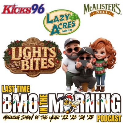 (Brian Montgomery) – The month of December becomes one to remember with as Kicks 96 is teaming up with Lazy Acres Lights in Chunky, and McAllister’s in Canal Place (in front of Woodstock Furniture) in Philadelphia to give two lucky winners a family 4 pack of tickets to Lazy Acre LIGHTS and a $50 gift card for “EATS” at McAllister’s! Whether your evening of family fun begins with those delicious eats at McAllister’s, or the holiday magic at Lazy Acres Lights where you can climb aboard a tractor-drawn wagon, drive through millions of twinkling lights, visit Santa’s helpers, or create crafts in Santa’s Workshop, it’s going to be a memorable occasion. Listen to the “Last Time on B-MO in the MO’rning podcast exclusively at kicks96news.com to hear the song you’re listening for to win! (Which is available to your right if you’re on your desk or laptop or scroll to the bottom of the story to hear it.) You can also press HERE to hear it, or any previous episode. Good luck, the fun begins on Monday!)