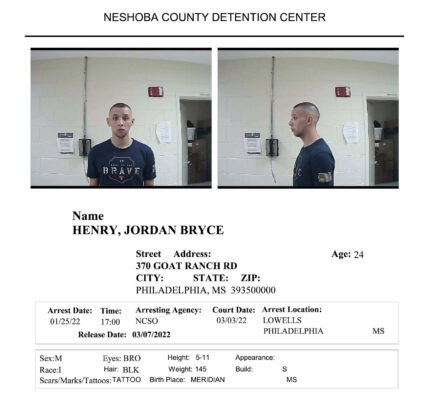 Law Enforcement Officers extricated the ATV and returned it to the owner but the other items taken were not.  Investigators are currently searching for Jordan Bryce Henry, last known address of 370 Goat Ranch Road, Philadelphia, MS 39350.  Henry is a 24-year-old Native American male, that stands 5-11” tall and weighs 145 Lbs.