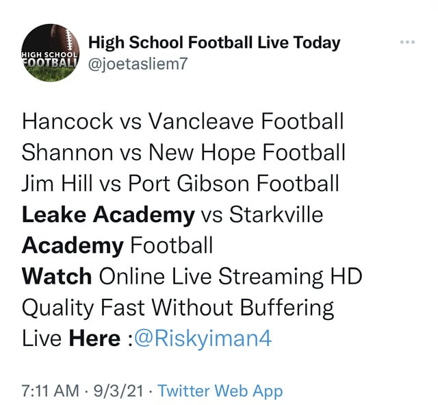 As high school football playoffs are in full swing, fans of local teams should be aware of spam posts promoting video streams of their favorite teams.