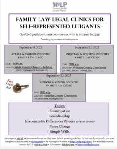 The Mississippi Volunteer Lawyers Project is holding free law legal clinics in the month of September.