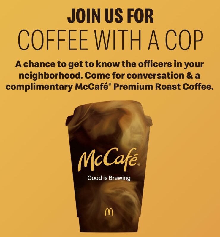 CPD Officers will be at McDonalds on Wednesday, October 5th from 8:30 – 10 a.m.
