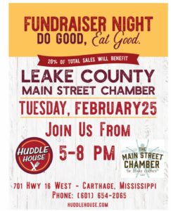 Join the Main Street Chamber Tomorrow at the Huddle House in Carthage. Huddle House will be donating 20% of the evenings sales to the Main Street Chamber. The money raised will help support the many activities the program does throughout the year. Also we will be giving away 3 chances for Huddle House for a year. It is your way to support a local business and the Main Street Chamber at the same time. See you Tomorrow from 5:00 to 8:00 p.m.