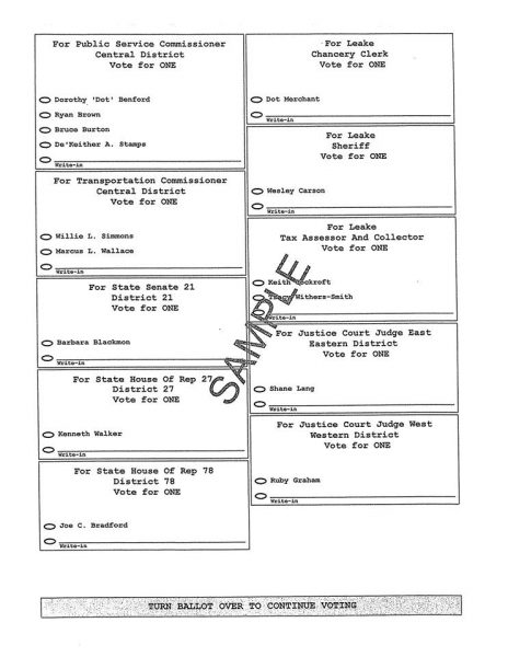 Before you head to the polls to vote in the August 6 Primary elections, take a look at the sample ballots for the Democratic Party Primary in Leake County.