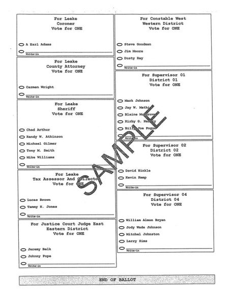 Before you head to the polls to vote in the August 6 Primary elections, take a look at the sample ballots for the Republican Party Primary in Leake County.