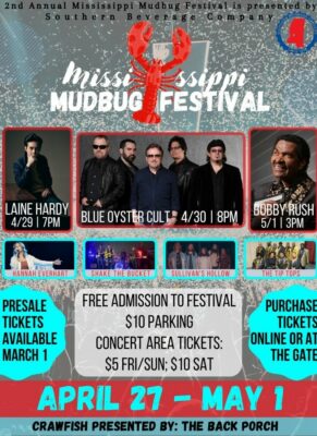 The Mississippi Mud Bug is back and bigger than ever. This year’s event runs April 27th through May 1st has free admission with $10 dollar parking, delicious crawfish presented by The Back Porch of Meridian and an entertainment lineup you don’t wanna miss: