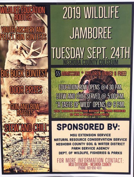 The annual Neshoba County Wildlife Jamboree will be held on Tuesday, September 24, 4:30 – 8:00 p.m., at the Neshoba County Coliseum.