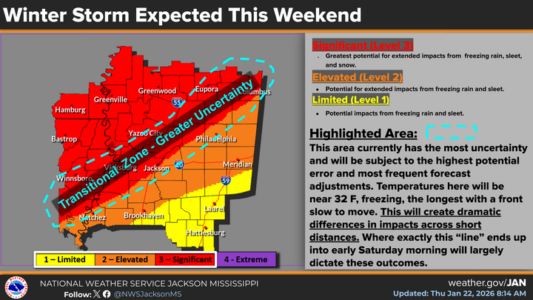 The National Weather Service still believes this weekend’s winter storm could have a significant impact on the northwestern half of Mississippi. Forecaster Eric Carpenter says, in some areas, we’re looking at what could be a rare combination of cold temperatures and moisture…