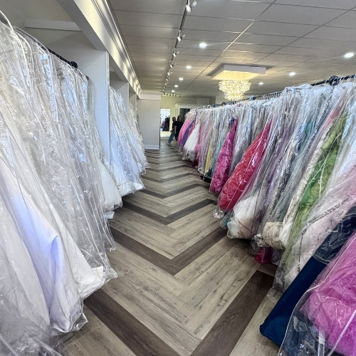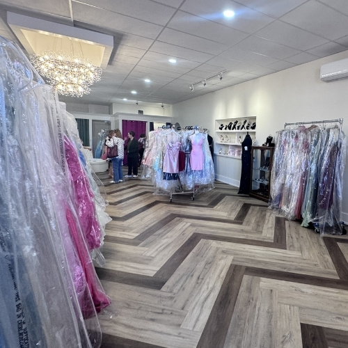 The shop offers a wide range of formal attire, including tuxedos for any occasion, prom and pageant dresses, bridal gowns, mother of the bride dresses, and bridesmaid dresses. Glamour Elegance Formals is also size inclusive, with adult sizes available anywhere from 00 and XXXS to 30 and 7XL, as well as all children’s sizes.