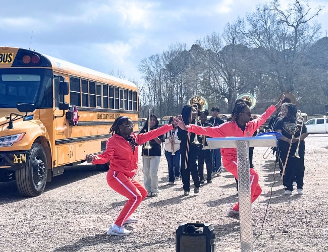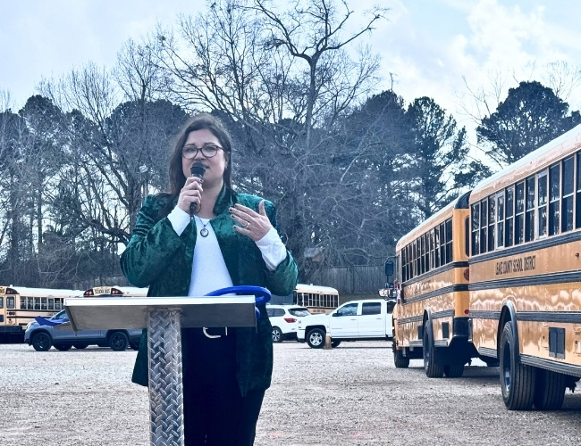 A ribbon-cutting ceremony was held Thursday, February 26, at the district’s bus terminal to celebrate the addition. Students from the Leake County and Leake Central High School bands performed together during the event. School board members, city and county officials, and community members were also in attendance to mark the occasion.