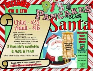 B-MO in the MO’rning – Red Bird Farms invites you to join the fun with PJs and Pancakes with Santa on your choice of days which are scheduled for either Saturday Dec 4th or the following Saturday on Dec 11th. The time slots available are 8am, 9:30am or 11:30. The event is a full pancake breakfast, kids activities and a keepsake photo. Email Red Bird Farms for details and reserve your spot now for this magical morning!