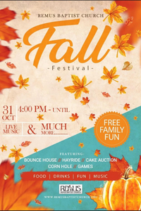 HomeAttalaRemus Fall FestivalRemus Fall FestivalThu, October 28, 2021 by Ashlee DavisSHARE NOW Remus Baptist Church in Edinburg will host their annual Fall Festival Sunday October 31st at 4pm.There will be live music, food, drinks, a bounce house, cake auction, corn hole, games, a hayride, and more. Join them for a night of free family fun!