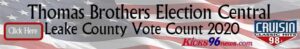 HomeLeakeThomas Brothers Leake County Vote Count 2020: Election ResultsThomas Brothers Leake County Vote Count 2020: Election ResultsTue, November 3, 2020 by Breck RileySHARE NOW As soon as results starts coming in, we’ll have them for you right here on Kicks96News.com. Click the banner below for results.