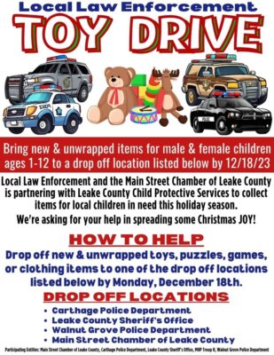 You can help save Christmas by donating toys to the Leake County Law Enforcement Toy Drive.