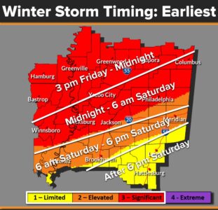 The National Weather Service is now confident that much of Mississippi will be hit by a winter storm this weekend. And the local area is expected to see “significant” impacts from the wintry precipitation, which could take the form of freezing rain, sleet and snow. It could begin late Friday night continuing through Sunday.