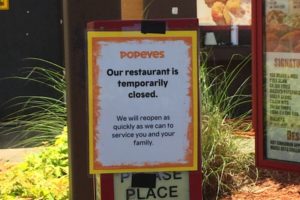 Since the Covid-19 pandemic has begun, the most popular drive thru in Philadelphia has been without a doubt Popeyes. Long lines out into the street are almost a certainty these days. Not today though. Signs are up and employees were seen leaving early this afternoon. Hopefully it’s something like broken equipment. We will update when more info is available