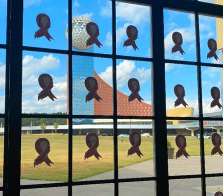 Pearl River Resort and its sister property, Bok Homa Casino, recently collected donations from associates for Breast Cancer Awareness. Employees received a t-shirt, button, and ribbon. Associates also wrote messages of encouragement that covered windows at Silver Star and Bok Homa Casinos. A check totaling $13,036.00 will be presented to the Central Mississippi Chapter of the American Cancer Society. Funds will help patients have transportation to and from treatment, as well as a place to stay for the patient and caregiver.