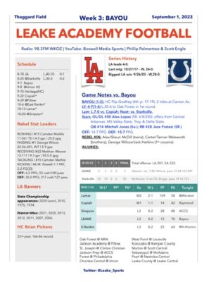 Before the Leake Academy Rebels take the field Friday night, you can hear a preview of the game during the SouthGroup Cox Coaches Show.